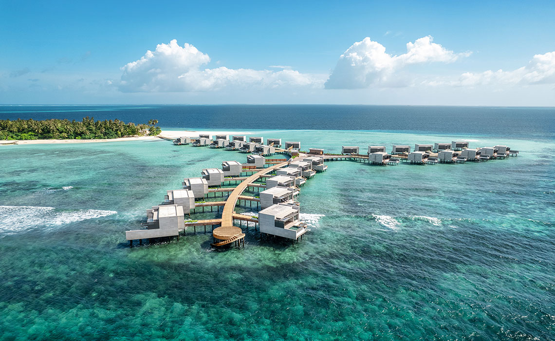 Die 80 Pool-Villen des Alila Kothaifaru stehen auf einer üppig grünen Insel im malerischen Raa-Atoll im nördlichen, noch relativ unberührten Teil der Malediven. Die Region ist für ihr vielseitiges Unterwasserleben bekannt: Direkt vor der Haustür liegen ein spektakuläres Hausriff und der berühmte Tauchspot „The Labyrinth”. Doch es gibt auch gute Gründe, an Land zu bleiben: Jede der Überwasser- und Strandvillen ist mit einem privaten Pool mit Sonnenterrasse und traumhafter Aussicht versehen. Die bewusst niedrig gehaltenen Bauten bieten großzügige Freiflächen sowie eine natürliche Farbpalette, die von der Insel inspiriert ist und einen selbstverständlichen Übergang zur Natur schafft. Zu den weiteren Highlights des vom bekannten Singapurer Studio „go to“ so elegant wie minimalistisch gestalteten Resorts zählen die terrassenförmig angelegten Pavillons, ein zauberhaftes Baumkronen-Spa und drei schicke Restaurants.