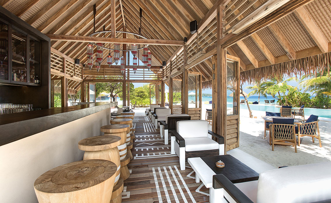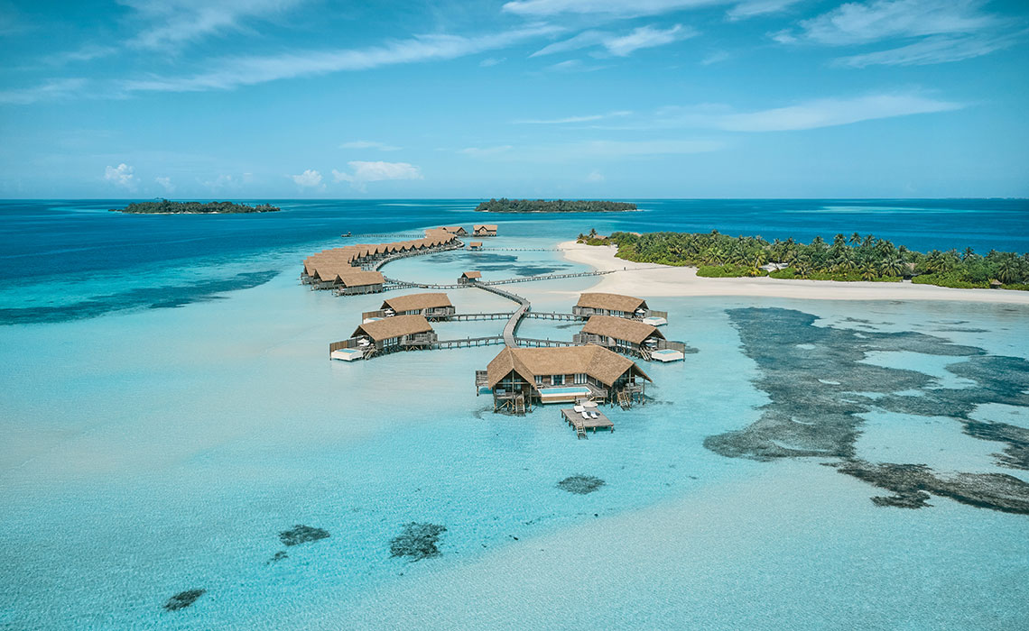 Ausschließlich Überwasservillen: nahe am Ufer, größtenteils gebaut in Form der traditionellen Dhoni-Boote.