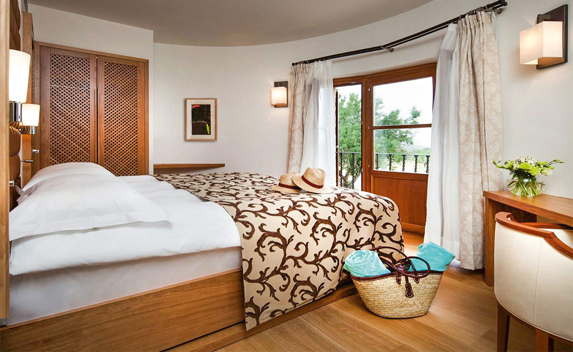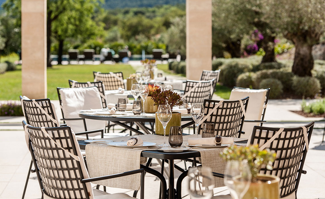 Schon wenn der Gast in die Einfahrt zum Castell Son Claret abbiegt, in der hohe Palmen in einem Meer von roten Rosen Spalier stehen, kommt man sich fast wie in einem Märchen vor. Das historische Gebäude liegt in der Nähe von Calvia und ist ein altes Schloss aus dem 19. Jahrhundert mit Ställen und Wasserturm, das äußerst geschmackvoll restauriert und zum Hotel umgebaut wurde. Hinter den dicken Schlossmauern und in den Nebengebäuden befinden sich 20 exklusive Zimmer und 23 Suiten, einige mit Balkon, Terrasse oder privatem Garten mit Pool. Die alte Kapelle ist in eine mit moderner Kunst geschmückte Bar umfunktioniert und ein paar Stufen tiefer im Schlosskeller befindet sich das schöne Spa mit Sauna und Hamam, Behandlungsräumen und Pool sowie einer erwähnenswerten tropischen Naturwand. Zwei Restaurants servieren das Beste aus der mediterranen Küche mit ganz frischen Zutaten aus dem Garten und aus der eigenen Bäckerei. Ob auf der tollen Terrasse oder in dem gemütlichen Gewölbe gespeist wird, entscheidet der Gast (oder das Wetter)! Das 132 ha große Anwesen ist wunderschön mit verschlungenen Wegen und Pfaden angelegt, gesäumt von Orangen- und Feigenbäumen, einem duftenden Rosengarten und lauschigen Plätzen am Wasser. Am Pool zu liegen mit fantastischem Blick auf die sanfte Hügellandschaft und die Berge im Hintergrund und dabei still vor sich hinzuträumen, ist einfach wahrer Luxus! So lautet auch das Hotelmotto: The Luxury of Being Yourself.