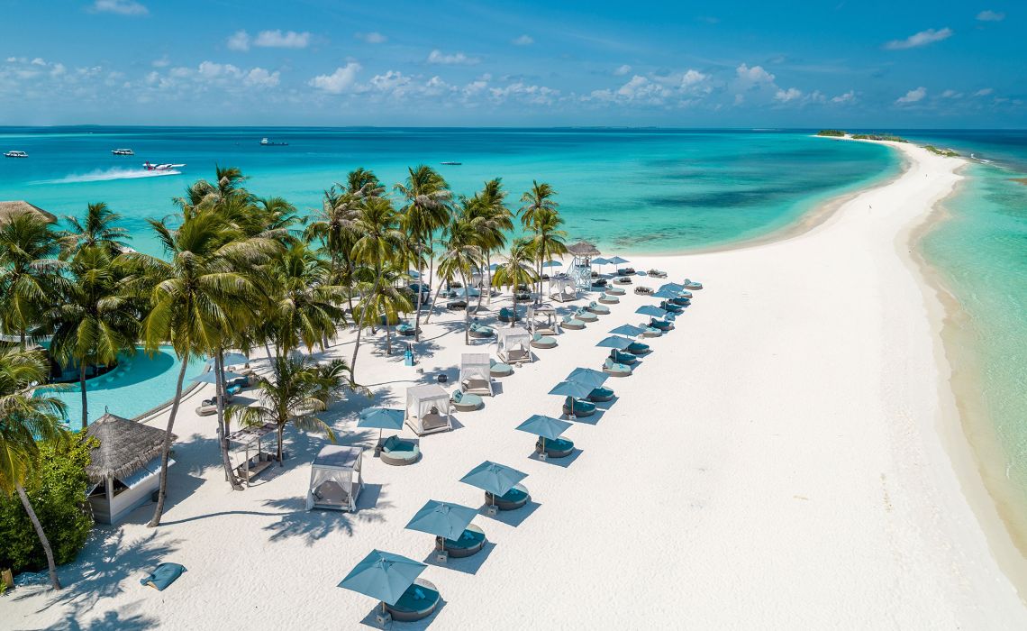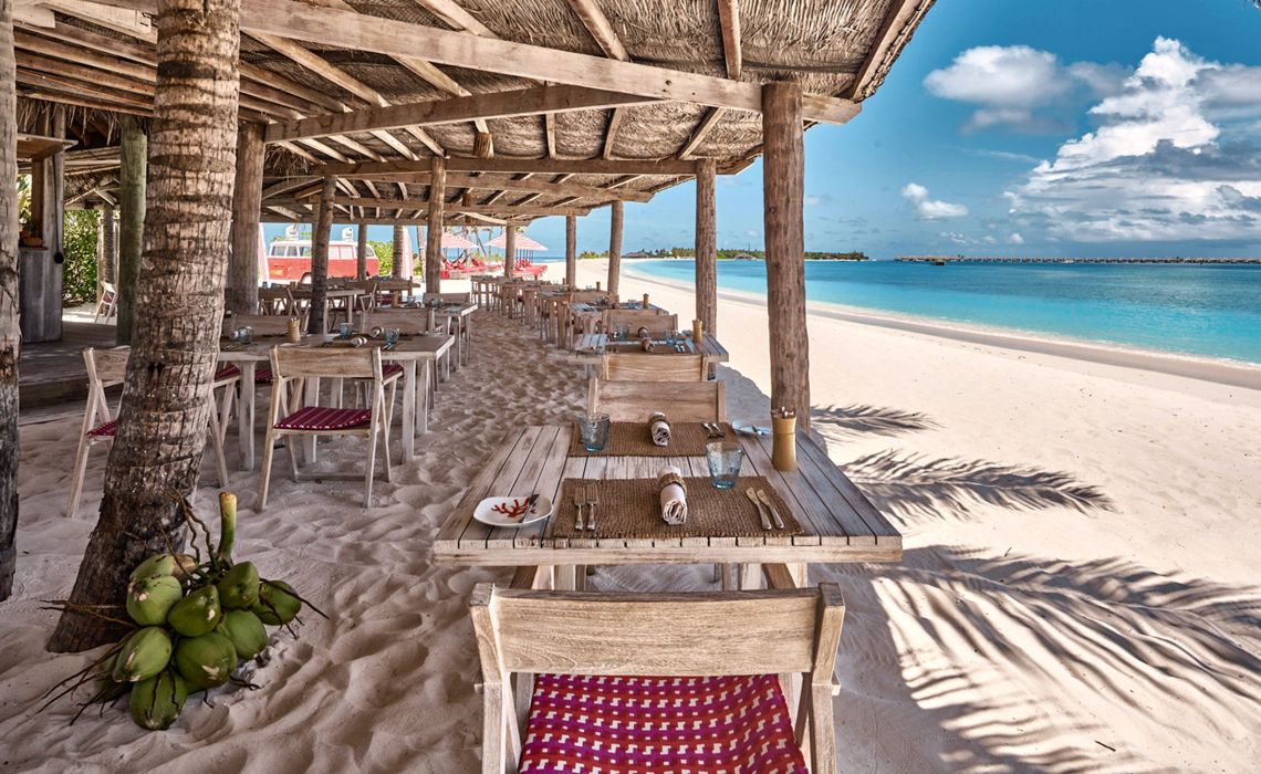 „Wer hier nicht barfuß läuft, ist overdressed“ – sagt ein Schild am Eingang des Fünf-Sterne-Hotels. Auf Finolhu trifft charmanter Insel-Chic auf tropische Leichtigkeit. Das 125-Villen-Resort überrascht seine Gäste mit einem gelungenen Bohemien-Saint-Tropez-Look. Finolhu ist eine wunderbare Mischung aus lässigem Entertainment und gepflegter maledivischer Romantik. Gesellschaft findet man bei einem Drink in der Beach-Bar oder in einem der vier Restaurants des Resorts. Ein einzigartiges Highlight ist die fast 2 km lange Sandbank ins türkisfarbene Meer hinaus. Sportliche Naturen, die diesen Traumstrand entlanggejoggt sind, dürfen sich auf eine angemessene Belohnung freuen: Der Crab Shack wartet mit köstlichem Seafood und Sonnenliegen – natürlich auch auf all jene, die nur relaxen wollen.