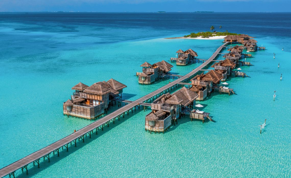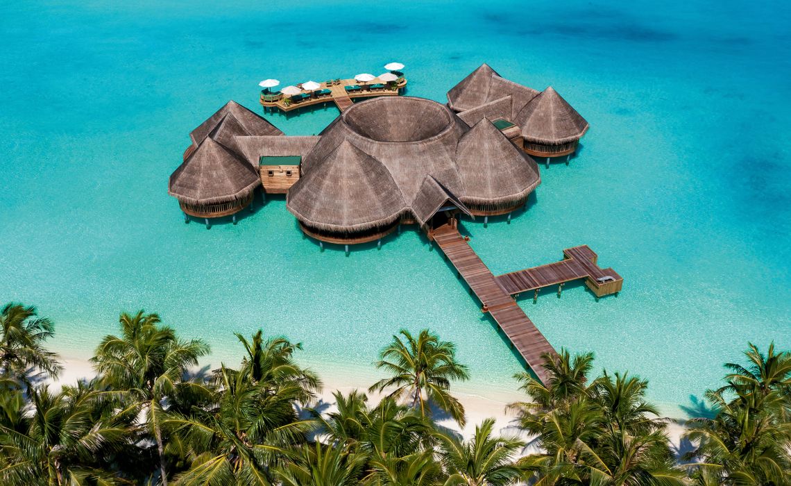 Es gibt 1.200 Malediven-Inseln, die meisten davon sind unberührt. Nur knapp 200 sind bewohnt, entweder von der einheimischen Bevölkerung oder von Urlaubsgästen, die hier ihren Südseetraum ausleben, obwohl sie nicht in der Südsee sind. Die ist viel weiter weg, aber optisch vergleichbar: Beim Anflug aus der Luft wirkt es, als habe Frau Holle ihr Kissen geschüttelt, nur dass anstelle von Federn Inseln in die Tiefe fielen. Dort schwimmen sie nun im türkisblauen Indischen Ozean. Ihr Kern ist dschungelgrün, ihre Ränder sind sandweiß und an langen Stegen, die wie schlanke Insektenbeine über das Wasser führen, reihen sich Häuschen, die sich aus der Nähe betrachtet als meist luxuriöse, großzügige Gäste-Bungalows entpuppen. In der Regel gilt: eine Insel, ein Hotel. In vielen davon wird Privacy zelebriert, in anderen auch öfter gefeiert. Breit gefächerte Wassersportmöglichkeiten, schöne Spas und diverse Restaurants bieten Abwechslung – doch eigentlich braucht man sie nicht. Die Aussicht von der eigenen Terrasse auf das Meer und die Privatleiter ins Wasser reichen, um wunschlos glücklich zu sein. So kommen Freunde ungestörter Einsamkeit ebenso auf ihre Kosten wie all jene, die Unterhaltung, Sport, Gourmet-Dining und Luxus suchen.