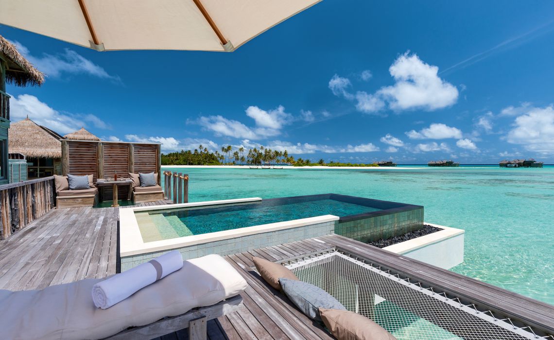 „No news – no shoes.“ Schon beim Einstieg in das hoteleigene Speedboot in Male verschwinden die Schuhe in einem Beutel mit genau diesem Motto – und mit ihnen der Alltag. Dresscodes oder Regeln? Im Gili Lankanfushi, nur sechs Seemeilen von Male entfernt, sucht man sie vergeblich. Wie drei Finger einer Hand strecken sich die holzbeplankten Stege in die türkisfarbene Lagune. Was die auf Stelzen erbauten Villen an äußerer Zurückhaltung zeigen, offenbart sich im Inneren als pure Überraschung: 210 qm außergewöhnlicher Luxus! Ein Wohngefühl der Extraklasse, das selbst erfahrene Luxusreisende staunen lässt. Klimatisierte Wohn- und Schlafbereiche wechseln sich ab mit lichtdurchflutetem Open-Air-Badezimmer, großzügigen Terrassen und – je nach Villenkategorie – eigenem Pool. Robinson Crusoe trifft auf Sechs-Sterne-Fantasie. Fast vergisst man dabei, auch die mindestens ebenso schöne Hauptinsel zu erkunden. Hier erwarten die Gäste zwei exzellente Restaurants – eines mit asiatisch-mediterraner, das andere mit japanisch-asiatischer Küche samt Tep-panyaki –, ein Tennisplatz, ein großer Pool sowie palmengesäumte Traumstrände wie aus dem Bilderbuch. Auch die Bar und das exklusive Spa – beide über dem Wasser erbaut – versprechen vollkommene Entspannung. Gili Lankanfushi ist kein Resort – es ist ein Lebensgefühl. Und eines, das man nur selten in dieser Form findet.
