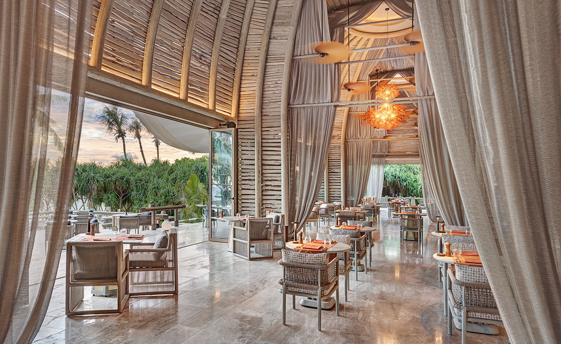 Nicht, dass es auf den Malediven an Wellnessangeboten mangelt – doch das neue Joali Being ist das erste Luxus-Retreat, das sich ausschließlich auf Wellness konzentriert. Es befindet sich auf der kleinen Naturinsel Bodufushi im Raa-Atoll, unweit der Schwesteranlage Joali Maldives und nur einen kurzen Wasserflug vom internationalen Flughafen Male entfernt. Die 68 Strand- und Wasservillen mit Pool, das Restaurant mit unterschiedlicher Signature-Küche und das Spa mit 39 Behandlungsräumen wurden nach biophilen Prinzipien gebaut, um die Verbindung zur Natur zu fördern. Dazu passen die strohgedeckten Strukturen mit hohen Decken, Sandböden und Dachlinien, die die Wellen imitieren. Bei der Einrichtung prägen schön verarbeitetes Treibholz, Schilfrohr, Kokosfasern und eine Farbpalette in Kieselgrau, Rosarot und Zartblau den Look. Die individuellen Wellnessprogramme kombinieren modernes Hightech mit alten Praktiken und werden von Naturheilkundlern, Bewegungsexperten und Ernährungsberatern betreut.