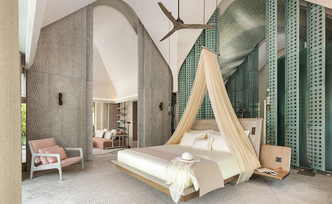 68 Villen. Alle mit eigenem Pool, sehr großzügig und hochwertig eingerichtet mit Innen- und Außendusche, Wellbeing-Bar, Safe, Tee- und Kaffee-Zubereitung, Bose-Soundsystem, Butler-Service.