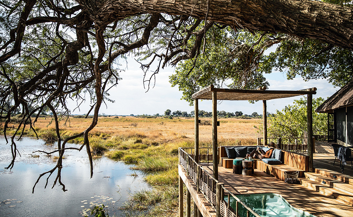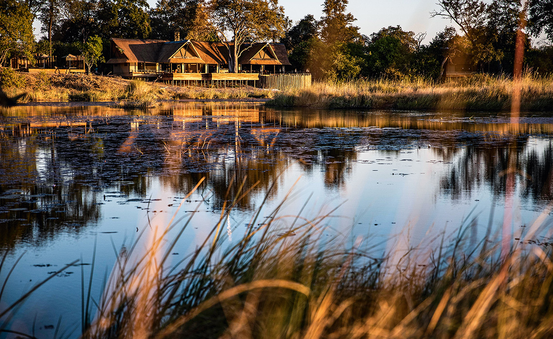Ursprünglich war dies ein rustikales Buschzeltlager des skandinavischen Königshauses und ein wenig royale Nostalgie ist bis heute zu spüren – selbst nach der umfangreichen Renovierung, die die Lodge in die Spitzengruppe der Safari-Unterkünfte in Botswana katapultierte. King's Pool thront leicht erhöht über der malerischen King's Pool-Lagune in der Linyanti Wildlife Reserve am Rande des Chobe-Nationalparks im Norden des Landes. Die 100-prozentig durch Solarenergie betriebene Anlage verfügt über neun Luxuszelte, jedes mit großzügigem Schlafzimmer, Lounge-Bereich, Veranda und Pool. Für Geselligkeit und Austausch mit gleichgesinnten Gästen stehen der Gemeinschaftspool, eine Bibliothek, eine Bar und die „kgotla" für Dinners unter den Sternen zur Verfügung.