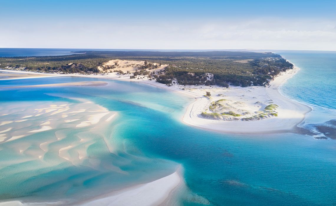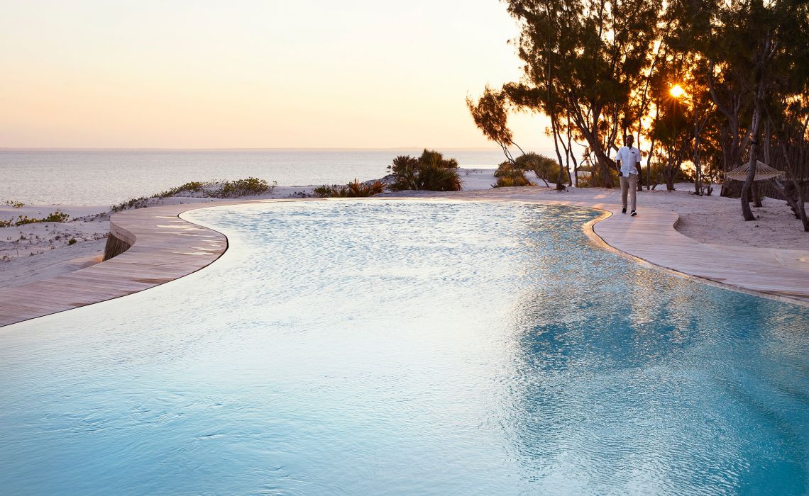 Der Bazaruto-Archipel liegt nur 14 km von der Küste von Mosambik entfernt und ist für weiße Strände und vielfältiges Meeresleben bekannt. Benguerra, die zweitgrößte der Inseln, hat sich zu einem heimlichen Rückzugsort für verwöhnte Jetsetter entwickelt. Grund dafür dürfte Kisawah sein: Das Resort steht in einem 300 ha großen Areal mit Wald, Strand und Dünen, die nur zwölf Villen wirken wie zufällig in die Landschaft gewürfelt und vereinen afrikanische Architektur mit modernistischen westlichen Designelementen. Die Auswahl reicht von 150-qm-Bungalows inklusive großzügigem Wohnzimmer, geräumigem Schlafzimmer, Ankleidezimmer und Bad mit frei stehender Badewanne bis zur Three-Bedroom-Residence, die 450 qm Wohnfläche in drei Bungalows und zwei private Infinity-Pools bietet. Zu den möglichen Aktivitäten gehören Übernachtungen in den Dünen, Sundowner auf einer traditionellen Dhau und Expeditionen zur Beobachtung von seltenen Seekühen. Man kann aber auch einfach eine Massage im Spa, ein Glas Stellenbosch-Rosé am Pool oder die von lokalen Fischern frisch gelieferten Meeresfrüchte in einem der Resort-Restaurants genießen. Die rund 180 Mitarbeiter des Resorts sind größtenteils Einheimische, die sich mit unverfälschter Herzlichkeit nicht nur um die Gäste, sondern auch um die komplette Infrastruktur, von den Permakulturgärten bis zur kleinen Insel-Klinik, kümmern.