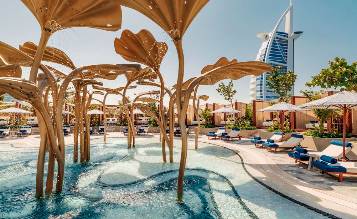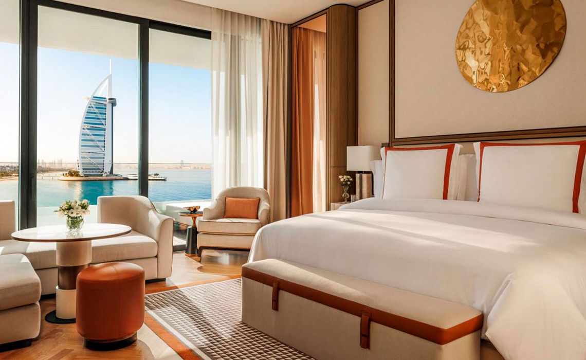 Wie eine gestrandete Superyacht liegt das neue Luxushotel Marsa al Sarab vor dem Burj Al Arab – ein maritim inspiriertes Lifestyle-Refugium mit arabischer Gastfreundschaft. Die 386 Zimmer und Suiten sowie 82 Residenzen beeindrucken mit Marmorbädern, Designermöbeln und spektakulärem Blick auf Dubais Skyline, die Marina oder zum Jumeirah Burj Al Arab mit Meerblick. Zur Ausstattung gehören ein dreistöckiger Wellnessbereich, schön gestaltete Gärten, elf Restaurants, vier Bars, fünf Pools, ein Privatstrand, eine eigene Marina und ein familienfreundlicher Kids-Club.