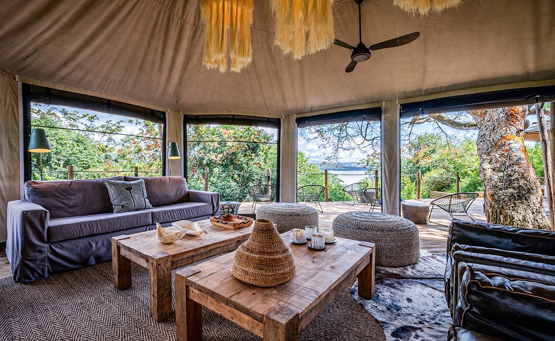 Highend-Glamping in Ruanda – sechs einzigartige, großräumige Gästezelte am Ufer des Rwanyakazinga-Sees ermöglichen ein völlig neues Wohnerlebnis in der bislang unberührten Wildnis des Akagera-Nationalparks. Magashi ist das erste Luxus-Safaricamp des Landes und eröffnete als Gemeinschaftsprojekt von Wilderness Safaris, der Non-Profit-Organisation African Parks und der für Entwicklung zuständigen staatlichen Behörden. Erklärtes Ziel: Gästen eine wirklich ungewöhnliche Lebenserfahrung zu bieten und das letzte noch existierende, gesunde und geschützte Savannen-Ökosystem Ruandas zu erhalten. Das Camp mit stilvoller Lounge, schönem Restaurant und schicker Bar, Weinkeller, Pool und Aussichtsdeck mit Feuerstelle ist das einzige, das über einen privaten Zugang zum Akagera-Park verfügt. Magashi-Gästen eröffnen sich dadurch exklusive Game-Drive- und Safari-Walk-Erfahrungen sowie spannende Seeausflüge, die sowohl tagsüber als auch bei Nacht durchgeführt werden können. Es ist so gut wie sicher, dabei auf Afrikas „Big Five“, aber auch auf Krokodile, Hippos und seltene Storcharten zu treffen – und selbst wenn nicht: Die spektakuläre Landschaft allein ist den Ausflug (und die Reise) wert.