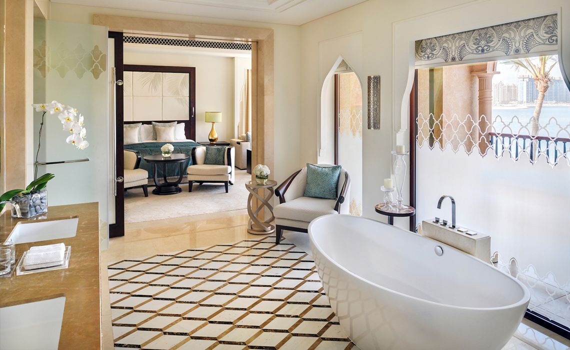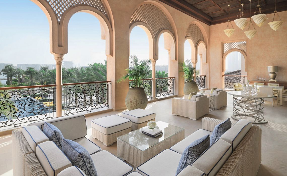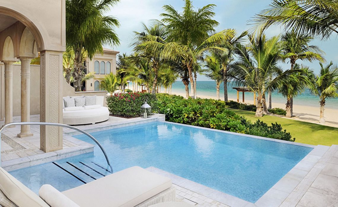 Das One&Only The Palm liegt wie ein verstecktes Juwel auf Dubais berühmter Palmeninsel – mit atemberaubendem Blick auf die glitzernde Skyline und doch wohltuend fern vom Trubel der Stadt. Selbst Reisende, die Dubai mit Zurückhaltung begegnen, finden hier einen Ort der Ruhe und Raffinesse. Was dieses Resort so besonders macht, ist seine intime Größe – ein Luxus, den man in der Welt der großen Hotelpaläste selten findet. Mit nur 91 stilvoll gestalteten Zimmern und Suiten sowie vier exklusiven Beachfront-Villen entfaltet es den Charakter eines eleganten Boutique-Hotels. Die maurisch-andalusische Architektur verleiht dem Ensemble eine sanfte Sinnlichkeit, während der legendäre One&Only-Service, die feine Küche und das geschmackvolle Interieur für ein Gefühl kultivierter Geborgenheit sorgen. Die Unterkünfte verteilen sich auf das Manor-Haupthaus und sechs zweigeschossige Mansions mit jeweils nur sieben bis neun Einheiten – eingebettet in üppiges Grün, nur Schritte vom samtweichen Sand entfernt. Zentrum der Anlage ist ein 850 qm großer Pool, umgeben von duftenden Gärten, plätschernden Fontänen und eleganten Tagesbetten – ein Ort, an dem die Zeit stillzustehen scheint.