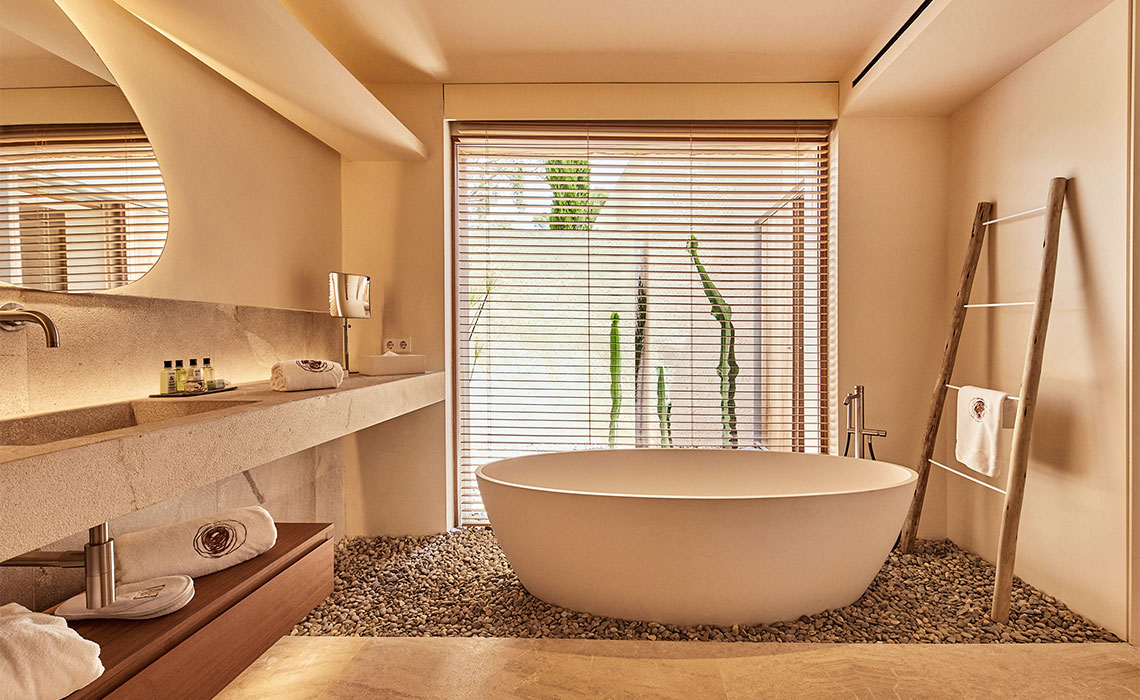Wir kennen und lieben das Can Simoneta und dessen grandiose Lage auf den Klippen direkt an der Canyamel-Bucht. Nur 200 m weiter mit Panoramablick und Palmengarten punktet das sahneweiße 30-Suiten-Resort Pleta de Mar, die junge Schwester von Can Simoneta. Wer sich satt gesehen hat, taucht in einen der drei Pools ein oder lässt sich im Spa mit Mittelmeersalz abschrubben und in eine Gurken-Yogurt-Minze-Packung wickeln. Die idyllische Bucht Sa Cova dels Albaradans ist über einen privaten Weg zu erreichen. Um mehr von der Küste zu sehen, steht das hoteleigene Motorboot bereit. Am Abend trifft man sich im Terrassenrestaurant Asador de Mar und genießt den Sonnenuntergang bei gegrilltem Fisch und einem Glas kühlen spanischen Wein.