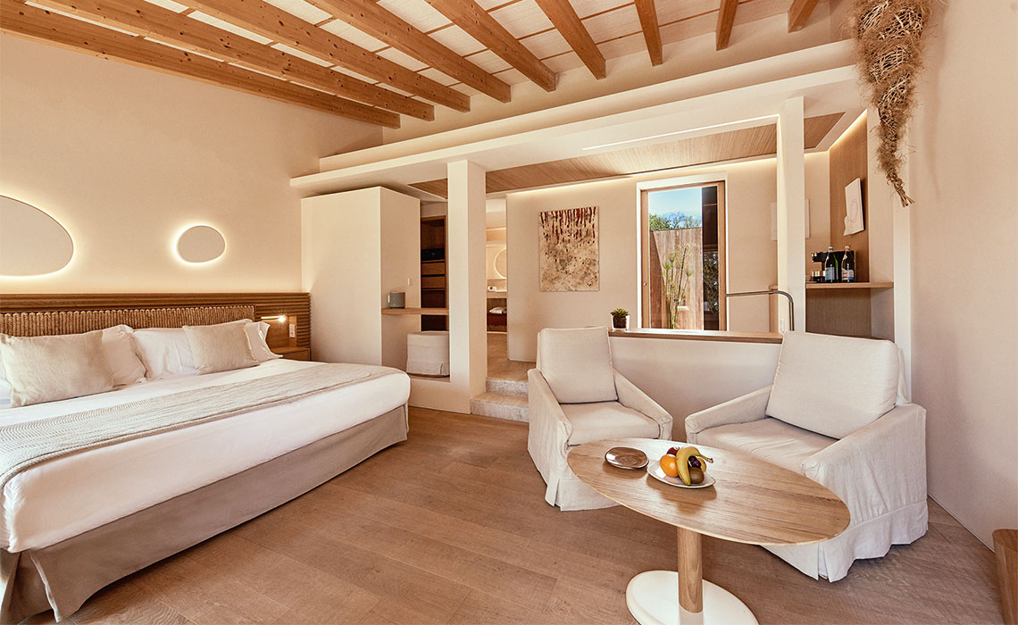 30 Suiten. Sehr geschmackvoll in hellen Farben eingerichtet mit Bad, TV, Minibar, Safe, Terrasse. Ab Kategorie Premiumsuite mit Meerblick.