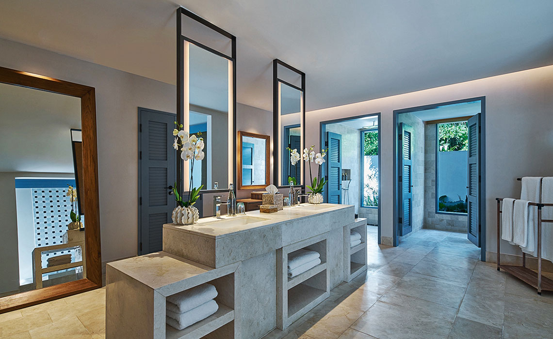 38 Villen. Alle mit Pool, sehr geräumig, äußerst geschmackvoll und chic eingerichtet, mit Bad, Innen- und Außendusche, TV/DVD, Minibar, Safe, Kaffee-/Teezubereiter.