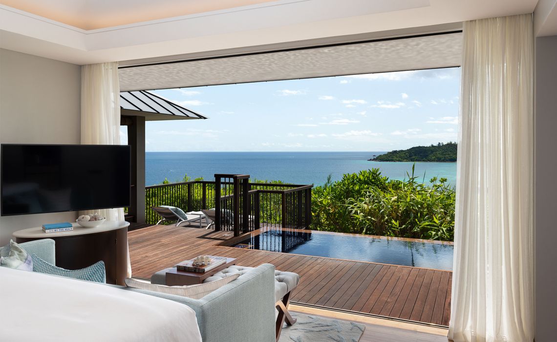 Der Traum von der einsamen Insel? Auf den Seychellen wird er (fast) wahr. Viele der rund 115 Inseln vor der Ostküste Afrikas sind unbewohnt, auf zwei, drei Handvoll anderer stehen exklusive Hotels, die ihren Gästen so viel Privatsphäre wie möglich bieten. Wer also wirklich seine Ruhe haben möchte – hier findet er sie. Und dazu noch einiges mehr: perfekten Service, spektakuläre Landschaften, seltene Tierarten und ein Gefühl von Harmonie. Dass man nicht ganz alleine ist, hat auch ein paar Vorteile. Schließlich stört es nicht, wenn der Butler mit dem eben erst bestellten Lunch auf der Terrasse erscheint oder wenn man beim Abendessen auf ein paar sympathische Gleichgesinnte trifft. Das sind ohnehin nur kurze Momente der Geselligkeit, die spätestens dann enden, wenn man die Tür der eigenen Pool-Villa hinter sich schließt.