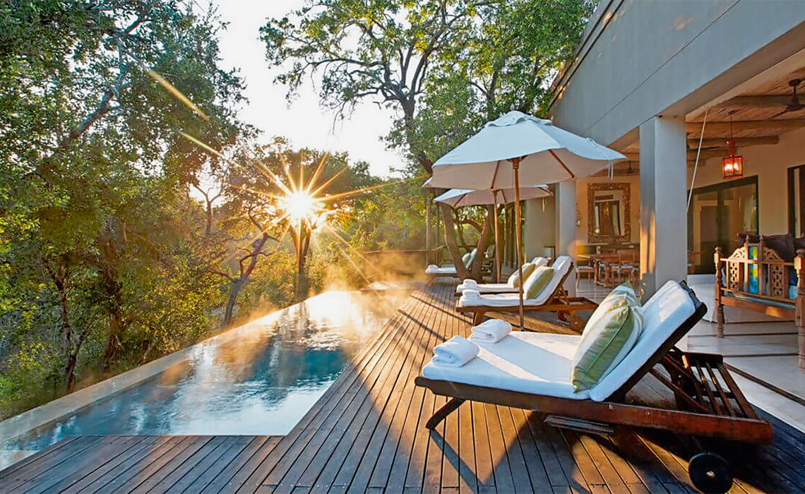 Royal Malewane liegt im Thornybusch-Wildreservat am westlichen Rand des Krüger Nationalparks. Die exklusive 6-Sterne-Lodge beherbergt nie mehr als 20 Gäste, ideal für Reisende, die Wert auf Privatsphäre legen. Die Lodge liegt eingebettet zwischen Schatten spendenden Akazien und anderen knorrigen Bäumen. Über schmale Holzwege gelangt man zu den acht Luxussuiten, alle edel und gemütlich mit Möbeln aus aller Welt eingerichtet. Von der Terrasse der Suiten aus kann das Treiben der Tierwelt im afrikanischen Busch sicher beobachtet werden. Am Abend wird stilvoll im Restaurant, dem Beduinenzelt oder in der afrikanischen Boma am Lagerfeuer gespeist.