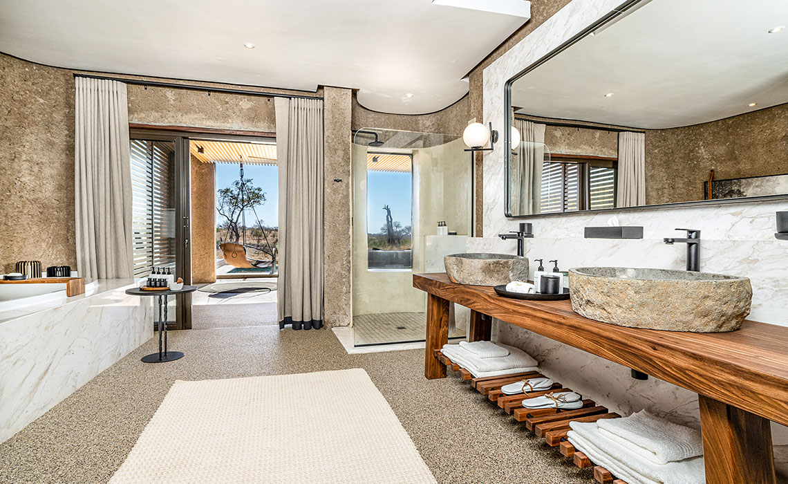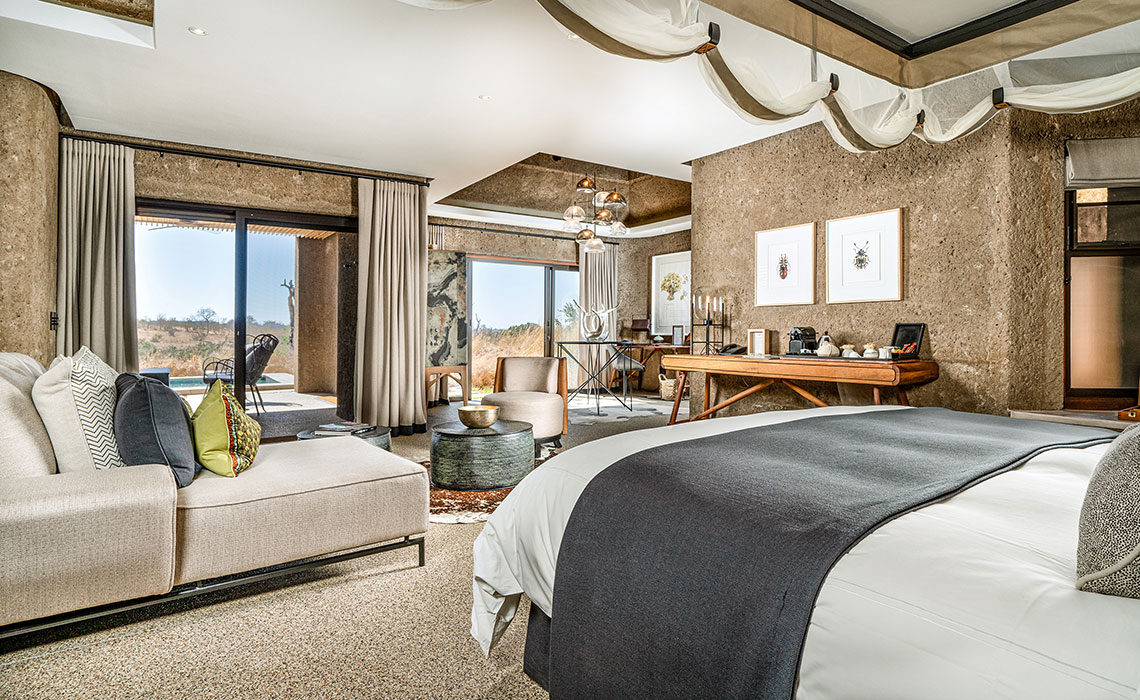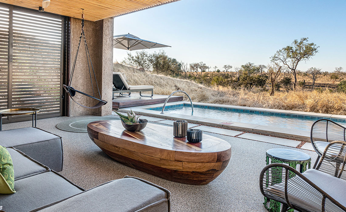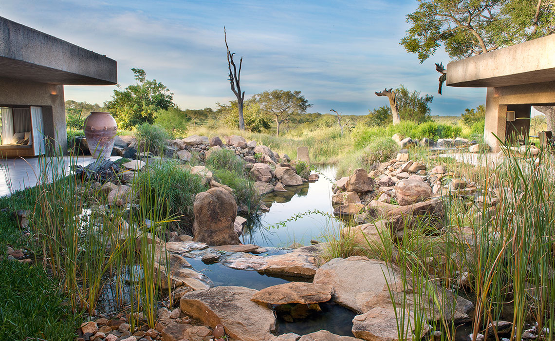 Sabi Sand Game Reserve – das sind 65.000 ha unberührte Wildnis westlich des Kruger Nationalparks, mit dem sich das Reservat eine 50 km lange, nicht eingezäunte Grenze teilt. Bekannt für Südafrikas beste Wildtierbeobachtungen und ganz besonders für die vielen, meist gut sichtbaren Leoparden, genießt Sabi Sands Kultstatus unter Safarifans. In dieser archaischen Naturlandschaft steht eine überraschende Lodge: Die Sabi Sabi Earth Lodge hat wenig mit dem anderswo üblichen Kolonial-Look gemein, sondern präsentiert sich mit moderner Architektur, einer gelungenen Mischung aus zeitgeistorientiertem Designermobiliar und afrikanischem Kunsthandwerk sowie einer konsequent durchgezogenen ökologischen Verpflichtung. 13 frei stehende Suiten bieten viel Platz, höchsten Komfort, schöne Bäder sowie großzügige Pool-Decks mit fantastischer Aussicht auf Landschaft und Tierwelt. Dazu: exzellente Küche, beeindruckende Weinauswahl, intimes Spa und hochqualifizierte Ranger und Guides.