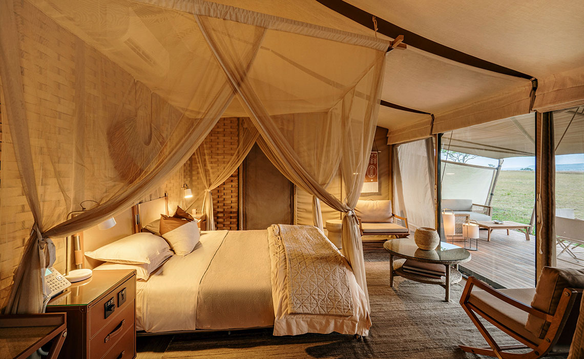 Authentisches Feldmobiliar aus den 1920er-Jahren, Kronleuchter, Kristallglas, persische Teppiche und Vasen mit frischen Rosen – das alles in der Serengeti, also im tiefsten afrikanischen Busch? Das Sabora Tented Camp macht es möglich und liefert gleich auch noch den makellosen Service eines perfekt geführten Hotelbetriebs dazu. Die neun Luxuszelte sind mit Lesebereich, Ankleidezimmer, Bad mit Badewanne und Außendusche sowie einer Aussichtsplattform mit Fernrohr versehen. Im Hauptcamp stehen zudem ein eleganter Essbereich, eine Lounge mit Bar, eine Bibliothek und ein Pool zur Verfügung. Fast noch schöner ist es außerhalb des Camps: Weite Ebenen mit schirmförmigen Akazien unter ewig blauem Himmel und ein lebhaftes Wildtierleben machen jede Ausfahrt im offenen Jeep zu einem absoluten Hochgenuss.