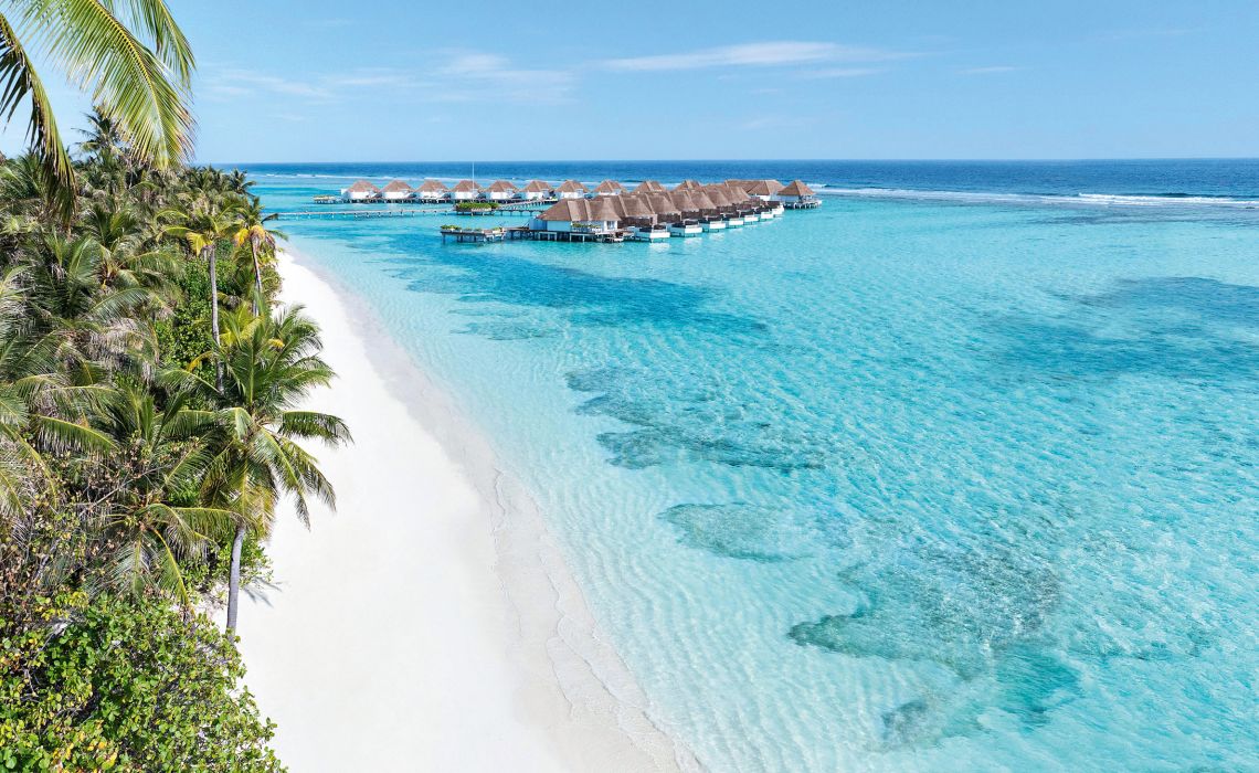 Es gibt 1.200 Malediven-Inseln, die meisten davon sind unberührt. Nur knapp 200 sind bewohnt, entweder von der einheimischen Bevölkerung oder von Urlaubsgästen, die hier ihren Südseetraum ausleben, obwohl sie nicht in der Südsee sind. Die ist viel weiter weg, aber optisch vergleichbar: Beim Anflug aus der Luft wirkt es, als habe Frau Holle ihr Kissen geschüttelt, nur dass anstelle von Federn Inseln in die Tiefe fielen. Dort schwimmen sie nun im türkisblauen Indischen Ozean. Ihr Kern ist dschungelgrün, ihre Ränder sind sandweiß und an langen Stegen, die wie schlanke Insektenbeine über das Wasser führen, reihen sich Häuschen, die sich aus der Nähe betrachtet als meist luxuriöse, großzügige Gäste-Bungalows entpuppen. In der Regel gilt: eine Insel, ein Hotel. In vielen davon wird Privacy zelebriert, in anderen auch öfter gefeiert. Breit gefächerte Wassersportmöglichkeiten, schöne Spas und diverse Restaurants bieten Abwechslung – doch eigentlich braucht man sie nicht. Die Aussicht von der eigenen Terrasse auf das Meer und die Privatleiter ins Wasser reichen, um wunschlos glücklich zu sein. So kommen Freunde ungestörter Einsamkeit ebenso auf ihre Kosten wie all jene, die Unterhaltung, Sport, Gourmet-Dining und Luxus suchen.