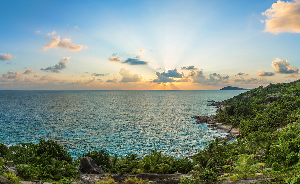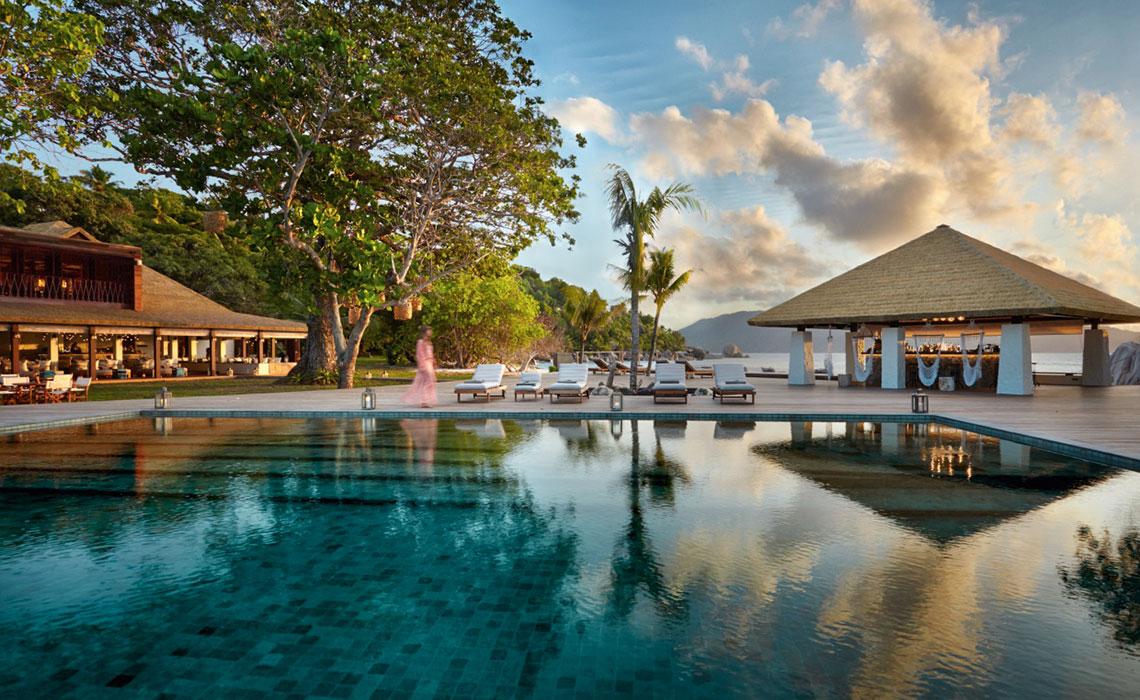 Der Traum von der einsamen Insel? Auf den Seychellen wird er (fast) wahr. Viele der rund 115 Inseln vor der Ostküste Afrikas sind unbewohnt, auf zwei, drei Handvoll anderer stehen exklusive Hotels, die ihren Gästen so viel Privatsphäre wie möglich bieten. Wer also wirklich seine Ruhe haben möchte – hier findet er sie. Und dazu noch einiges mehr: perfekten Service, spektakuläre Landschaften, seltene Tierarten und ein Gefühl von Harmonie. Dass man nicht ganz alleine ist, hat auch ein paar Vorteile. Schließlich stört es nicht, wenn der Butler mit dem eben erst bestellten Lunch auf der Terrasse erscheint oder wenn man beim Abendessen auf ein paar sympathische Gleichgesinnte trifft. Das sind ohnehin nur kurze Momente der Geselligkeit, die spätestens dann enden, wenn man die Tür der eigenen Pool-Villa hinter sich schließt.