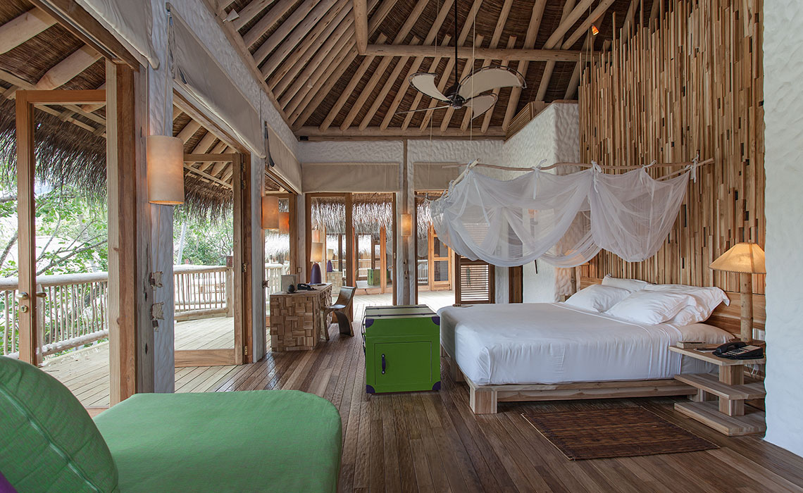 Villen mit 1 bis 9 Schlafzimmern: extrem großzügig im „Robinson-Crusoe-Stil“ eingerichtet, teilweise auf zwei Ebenen und mit eigenem Pool, luxuriösem Open-Air-Bad, Minibar, TV, iPod-Dockingstation, weitläufigem Garten mit viel Privatsphäre.