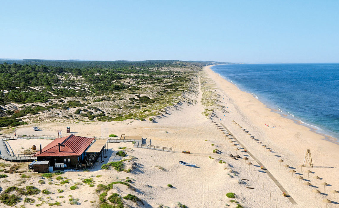 Südlich von Lissabon liegt die Halbinsel Troia, eine 60 km lange Sandzunge, umspült vom türkisblauen Wasser des Atlantiks. Der Geheimtipp dort: das abgeschiedene Dorf Comporta, eine ländlich-mondäne Idylle zwischen Reisfeldern und Sanddünen mit 12 km Stand, schicken Fischerhütten und prominenten Besuchern. Es gibt nur wenige Hotels – die meisten Gäste, darunter Künstler Anselm Kiefer, Designer Jacques Grange und Schuh-Papst Christian Louboutin, besitzen eigene Häuser. Doch langsam und behutsam wurden Strukturen geschaffen, die es auch fremden Besuchern ermöglichen, in Comporta Urlaub zu machen. Das Sublime Comporta ist ein schickes Hotel mit minimalistischem Design und leicht kolonialem Vintage-Dekor. Zur Verfügung stehen 23 Zimmer und Suiten mit raumhohen Fenstern, XL-Badewannen und Terrassen sowie 22 Villen im Cabana-Stil mit eigenem Schwimmbecken und großen Außenbereichen. Dazu: schöner Gemeinschaftspool, Spa und drei tolle Restaurants.