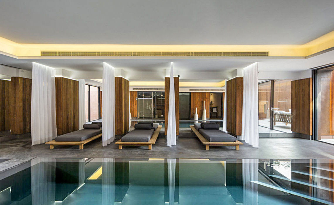 90 Zimmer, Suiten und Villen. In hellen Farben minimalistisch eingerichtet, Minibar, Safe, TV, Terrasse, Villen mit privatem Pool.
