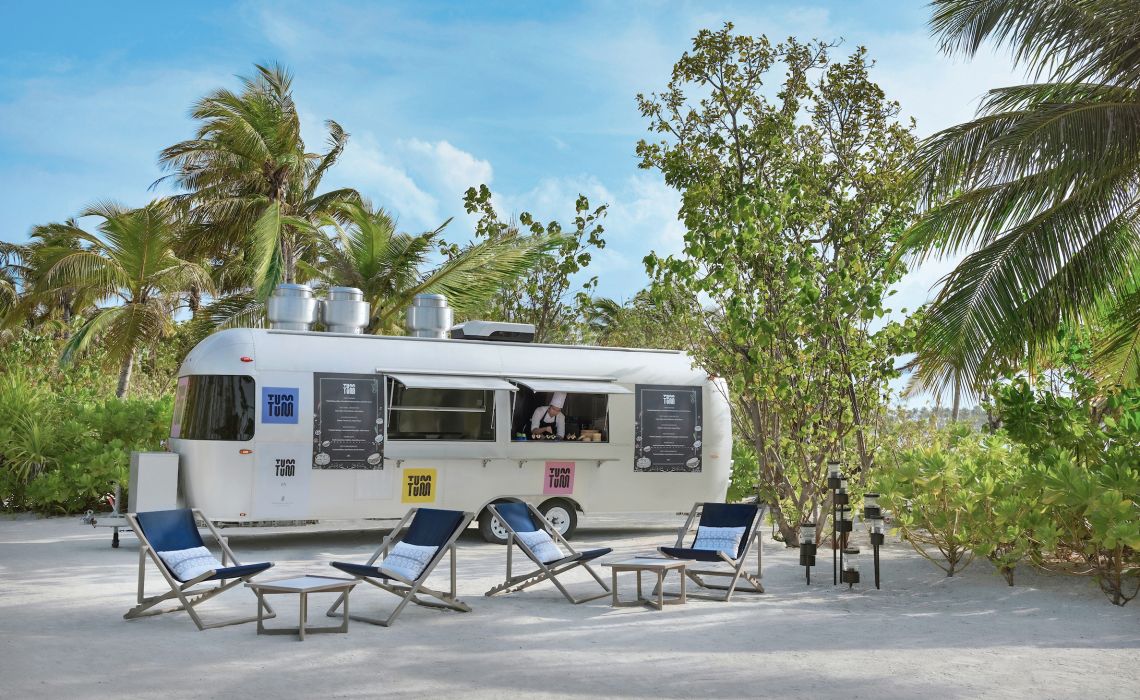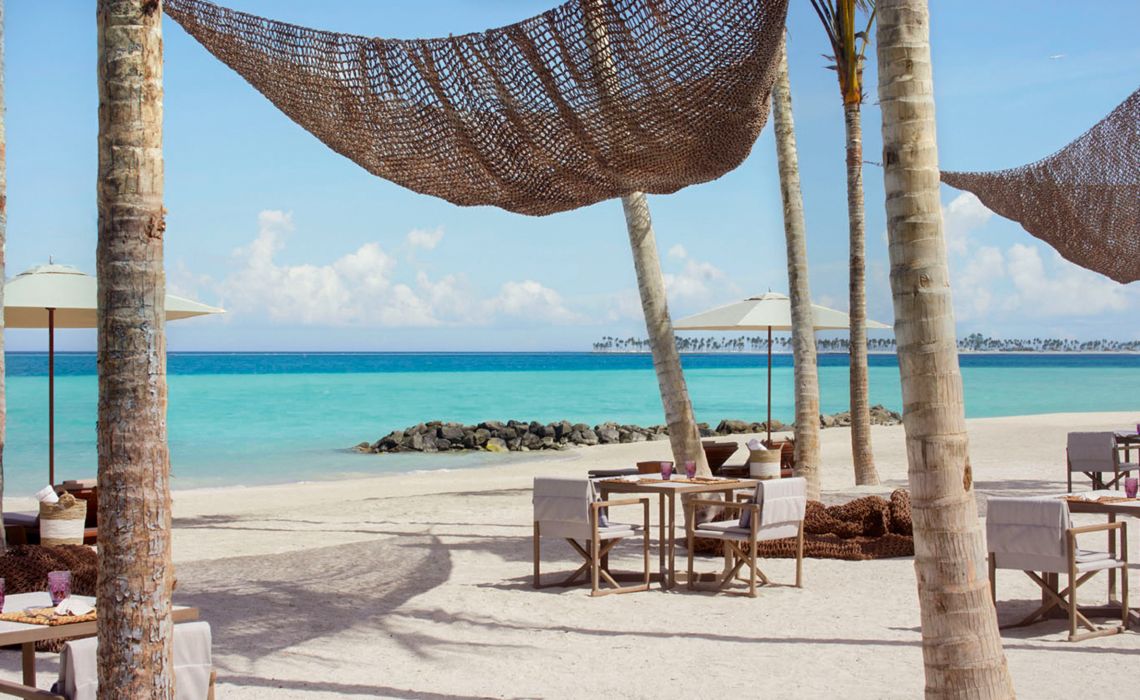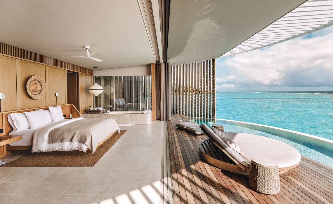 Was sucht der Urlauber auf den Malediven? Luxus? Ruhe? Abgeschiedenheit? Türkis glitzerndes Meerwasser? Die Top-Resorts des Archipels bieten dies und noch viel mehr – jedes für sich auf einer eigenen Insel und Lichtjahre entfernt vom touristischen Tohuwabohu, das andere beliebte Feriendestinationen prägt. Ein wenig Rummel hat aber auch seinen Reiz – jedenfalls dann, wenn er sich hochwertig, geschmackvoll und exklusiv präsentiert. Deshalb wagte Ritz-Carlton zusammen mit zwei weiteren Partnern aus der Luxushotellerie ein so ungewöhnliches wie vielversprechendes Gemeinschaftsprojekt: Fari Islands, eine Inselgruppe, die mit malerischer Marina, lebhaftem Beach-Club, schicken Boutiquen, Bars und Restaurants fast ein wenig Saint-Tropez-Flair verströmt. Die Fari Islands schwimmen im Nord-Male-Atoll, nur 50 Speedboat-Minuten oder einen kurzen Hüpfer mit dem Wasserflugzeug vom internationalen Flughafen entfernt. Auf und vor einer eigenen, üppig begrünten Insel mit sichelförmigen Puderzuckerstränden stehen die rund 100 Land- und Überwasservillen des Ritz-Carlton. Zur Ausstattung gehören ein bis vier Schlafzimmer, Pool und Panorama-Sonnendeck sowie zeitgeistorientierte Interieurs des bekannten Singapurer Designstudios Kerry Hill Architects. Dazu: diverse Bars und Restaurants, ein himmlisches Spa, jede Menge Sportmöglichkeiten und eine kleine Bootsflotte, die Gäste in Nullkommanichts mitten ins Geschehen von Fari Islands Gesellschaftsleben am Yachthafen bringt. So hat man beides: „splendid isolation“ und unterhaltsames „people watching“.