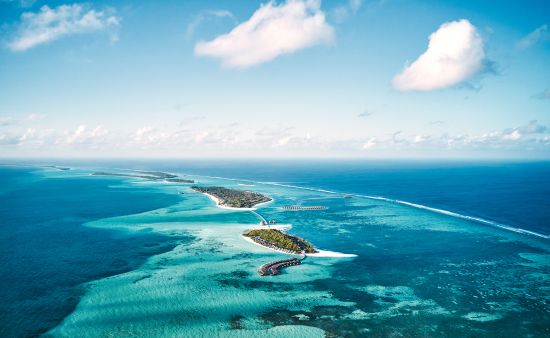 Es gibt 1.200 Malediven-Inseln, die meisten davon sind unberührt. Nur knapp 200 sind bewohnt, entweder von der einheimischen Bevölkerung oder von Urlaubsgästen, die hier ihren Südseetraum ausleben, obwohl sie nicht in der Südsee sind. Die ist viel weiter weg, aber optisch vergleichbar: Beim Anflug aus der Luft wirkt es, als habe Frau Holle ihr Kissen geschüttelt, nur dass anstelle von Federn Inseln in die Tiefe fielen. Dort schwimmen sie nun im türkisblauen Indischen Ozean. Ihr Kern ist dschungelgrün, ihre Ränder sind sandweiß und an langen Stegen, die wie schlanke Insektenbeine über das Wasser führen, reihen sich Häuschen, die sich aus der Nähe betrachtet als meist luxuriöse, großzügige Gäste-Bungalows entpuppen. In der Regel gilt: eine Insel, ein Hotel. In vielen davon wird Privacy zelebriert, in anderen auch öfter gefeiert. Breit gefächerte Wassersportmöglichkeiten, schöne Spas und diverse Restaurants bieten Abwechslung – doch eigentlich braucht man sie nicht. Die Aussicht von der eigenen Terrasse auf das Meer und die Privatleiter ins Wasser reichen, um wunschlos glücklich zu sein. So kommen Freunde ungestörter Einsamkeit ebenso auf ihre Kosten wie all jene, die Unterhaltung, Sport, Gourmet-Dining und Luxus suchen.