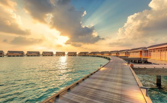 Es gibt 1.200 Malediven-Inseln, die meisten davon sind unberührt. Nur knapp 200 sind bewohnt, entweder von der einheimischen Bevölkerung oder von Urlaubsgästen, die hier ihren Südseetraum ausleben, obwohl sie nicht in der Südsee sind. Die ist viel weiter weg, aber optisch vergleichbar: Beim Anflug aus der Luft wirkt es, als habe Frau Holle ihr Kissen geschüttelt, nur dass anstelle von Federn Inseln in die Tiefe fielen. Dort schwimmen sie nun im türkisblauen Indischen Ozean. Ihr Kern ist dschungelgrün, ihre Ränder sind sandweiß und an langen Stegen, die wie schlanke Insektenbeine über das Wasser führen, reihen sich Häuschen, die sich aus der Nähe betrachtet als meist luxuriöse, großzügige Gäste-Bungalows entpuppen. In der Regel gilt: eine Insel, ein Hotel. In vielen davon wird Privacy zelebriert, in anderen auch öfter gefeiert. Breit gefächerte Wassersportmöglichkeiten, schöne Spas und diverse Restaurants bieten Abwechslung – doch eigentlich braucht man sie nicht. Die Aussicht von der eigenen Terrasse auf das Meer und die Privatleiter ins Wasser reichen, um wunschlos glücklich zu sein. So kommen Freunde ungestörter Einsamkeit ebenso auf ihre Kosten wie all jene, die Unterhaltung, Sport, Gourmet-Dining und Luxus suchen.